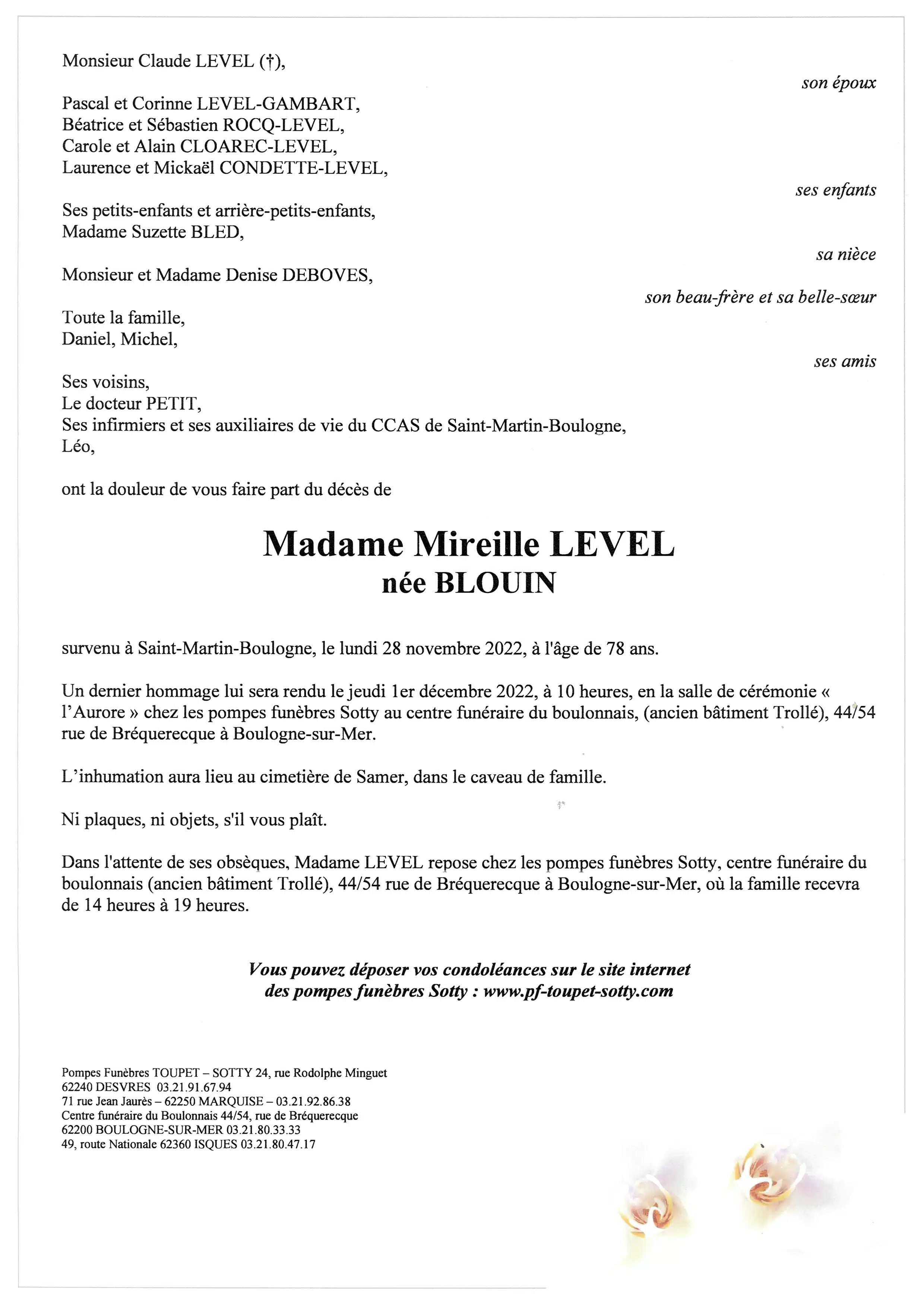 Madame Mireille LEVEL