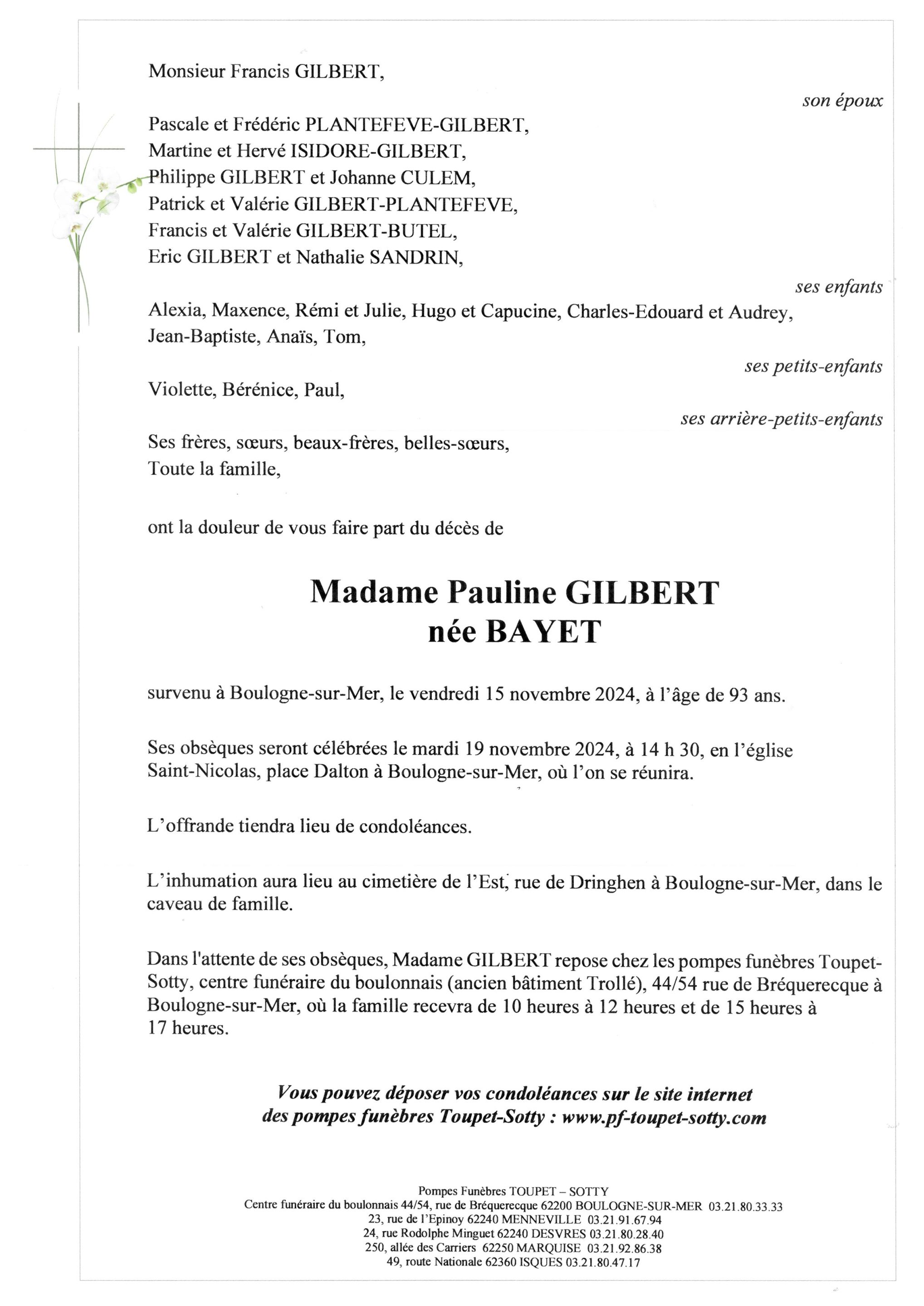 Madame Pauline GILBERT