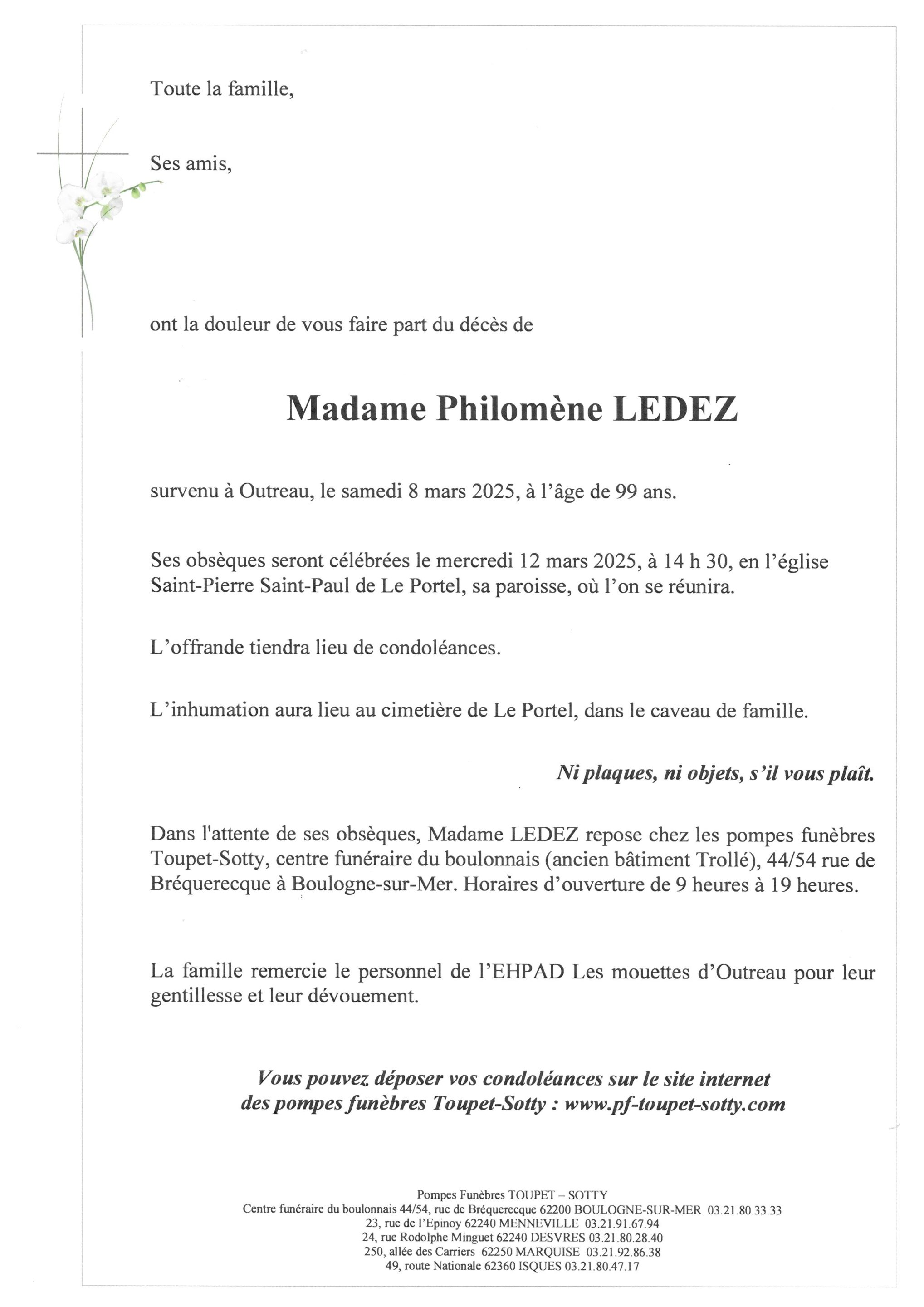 Madame Philomène LEDEZ