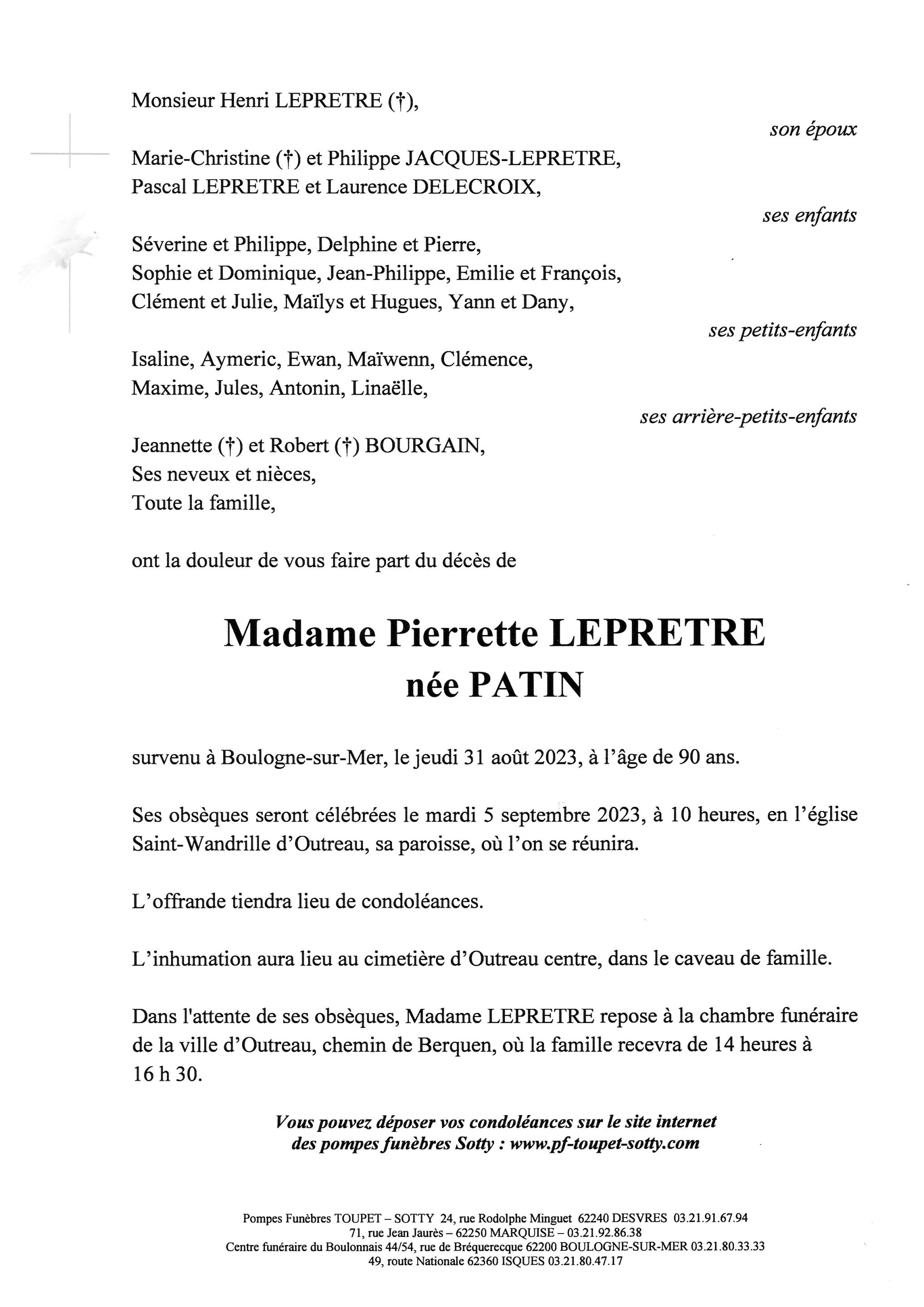 Madame Pierrette LEPRETRE