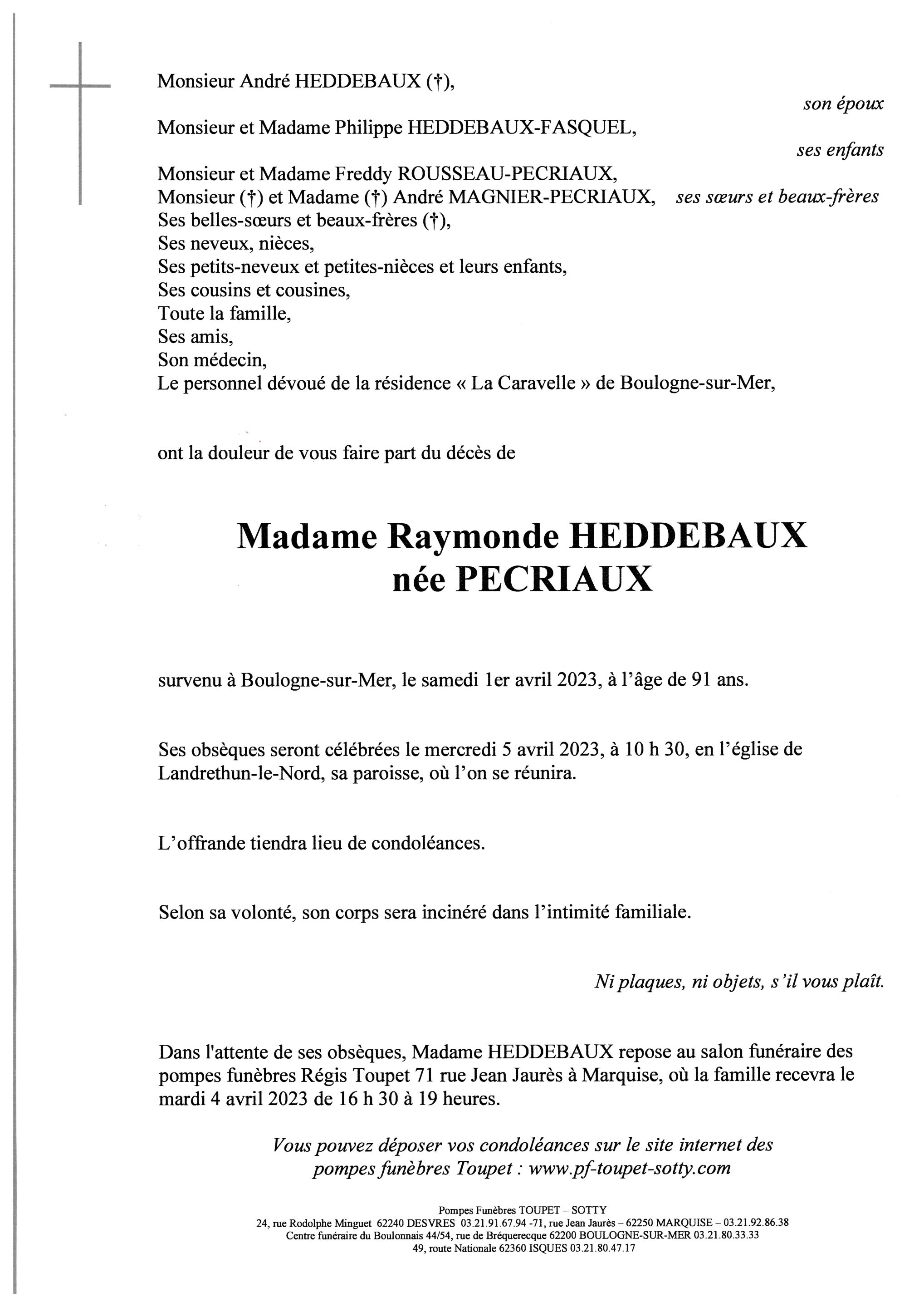 Madame Raymonde HEDDEBAUX
