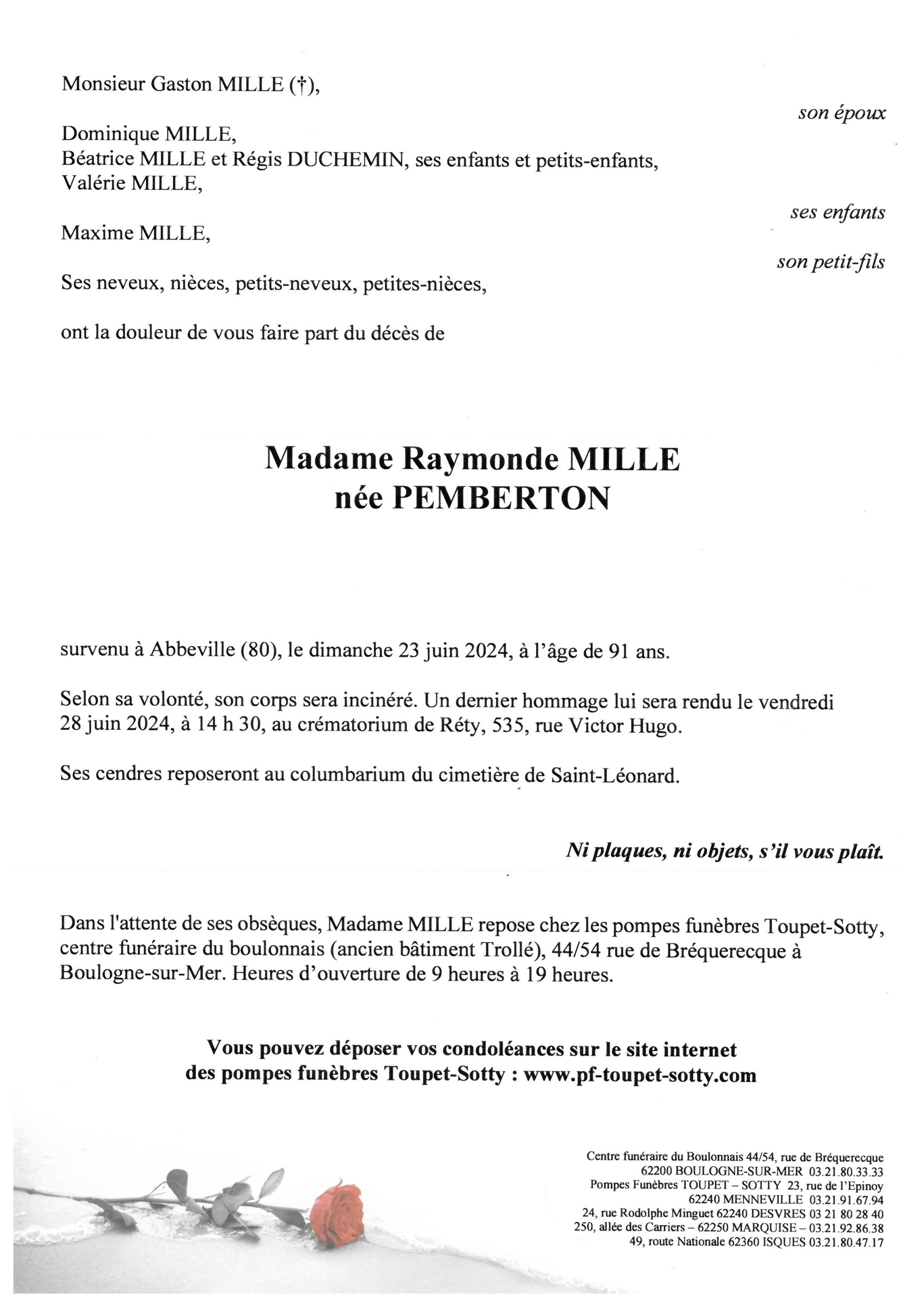 Madame Raymonde MILLE