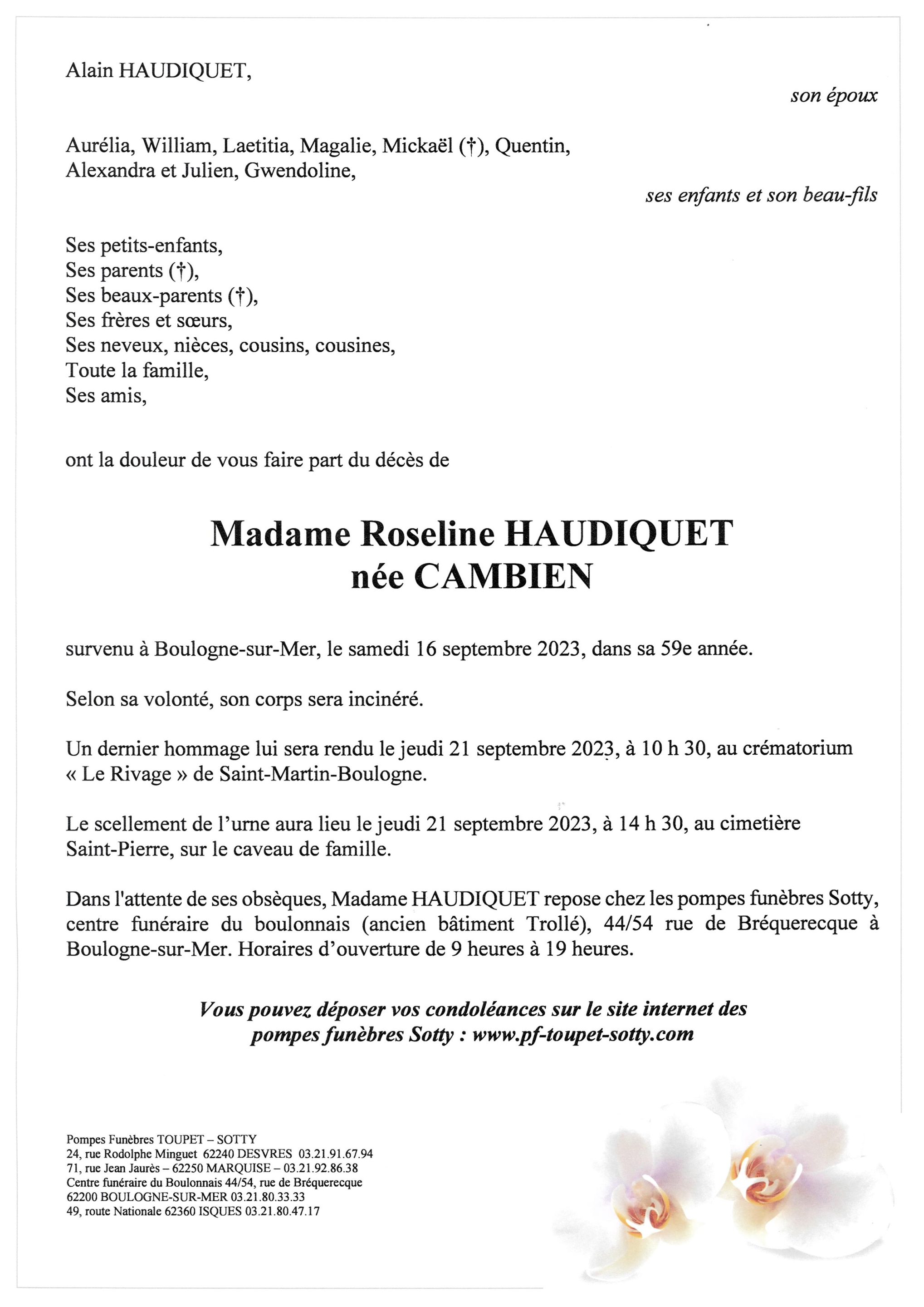 Madame Roseline HAUDIQUET