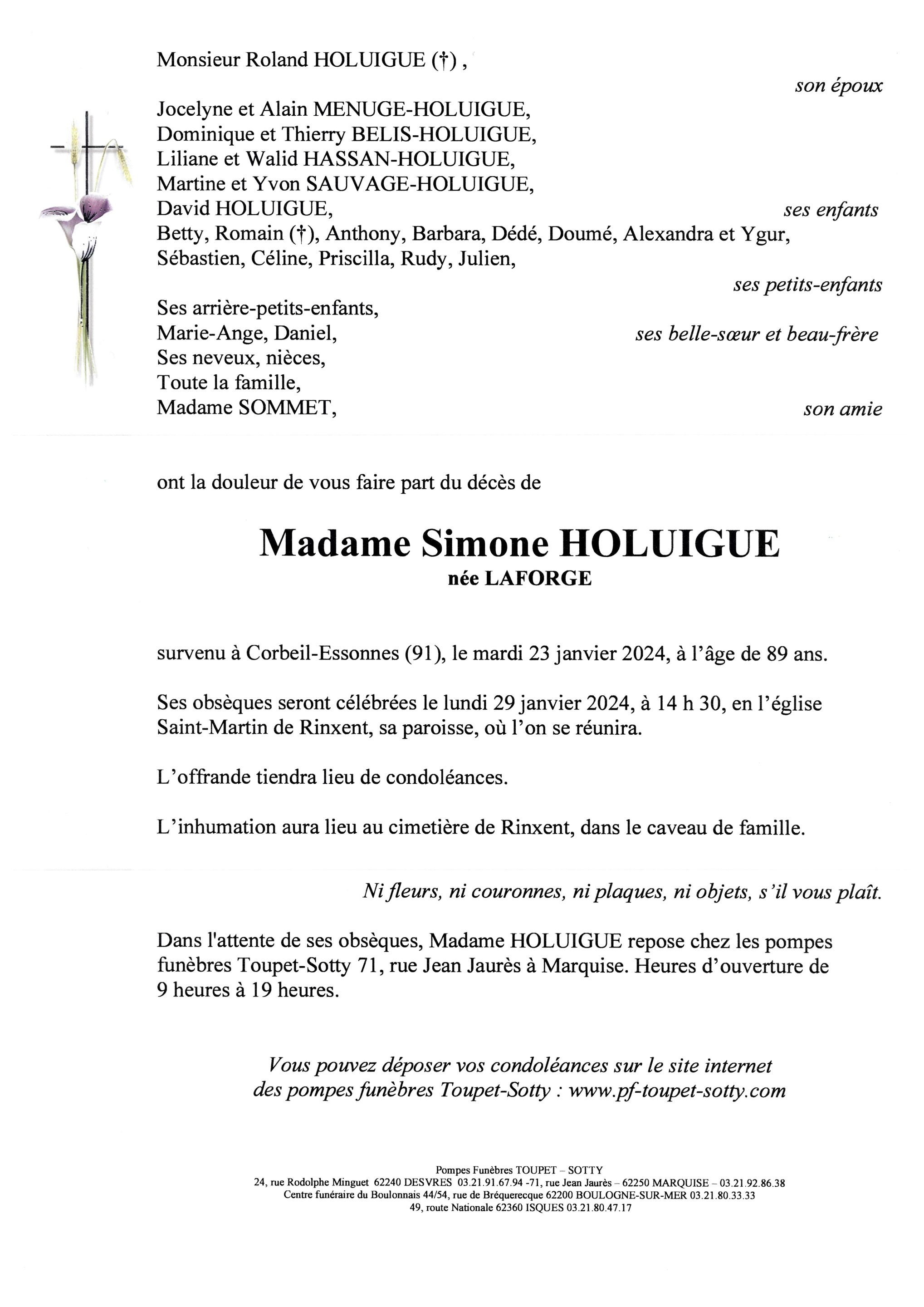 Madame Simone HOLUIGUE