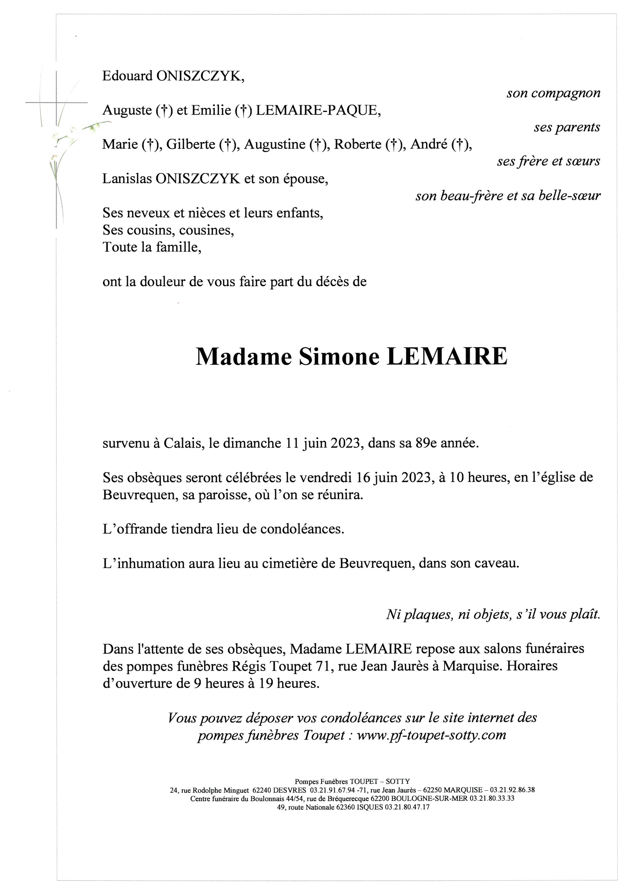 Madame Simone LEMAIRE