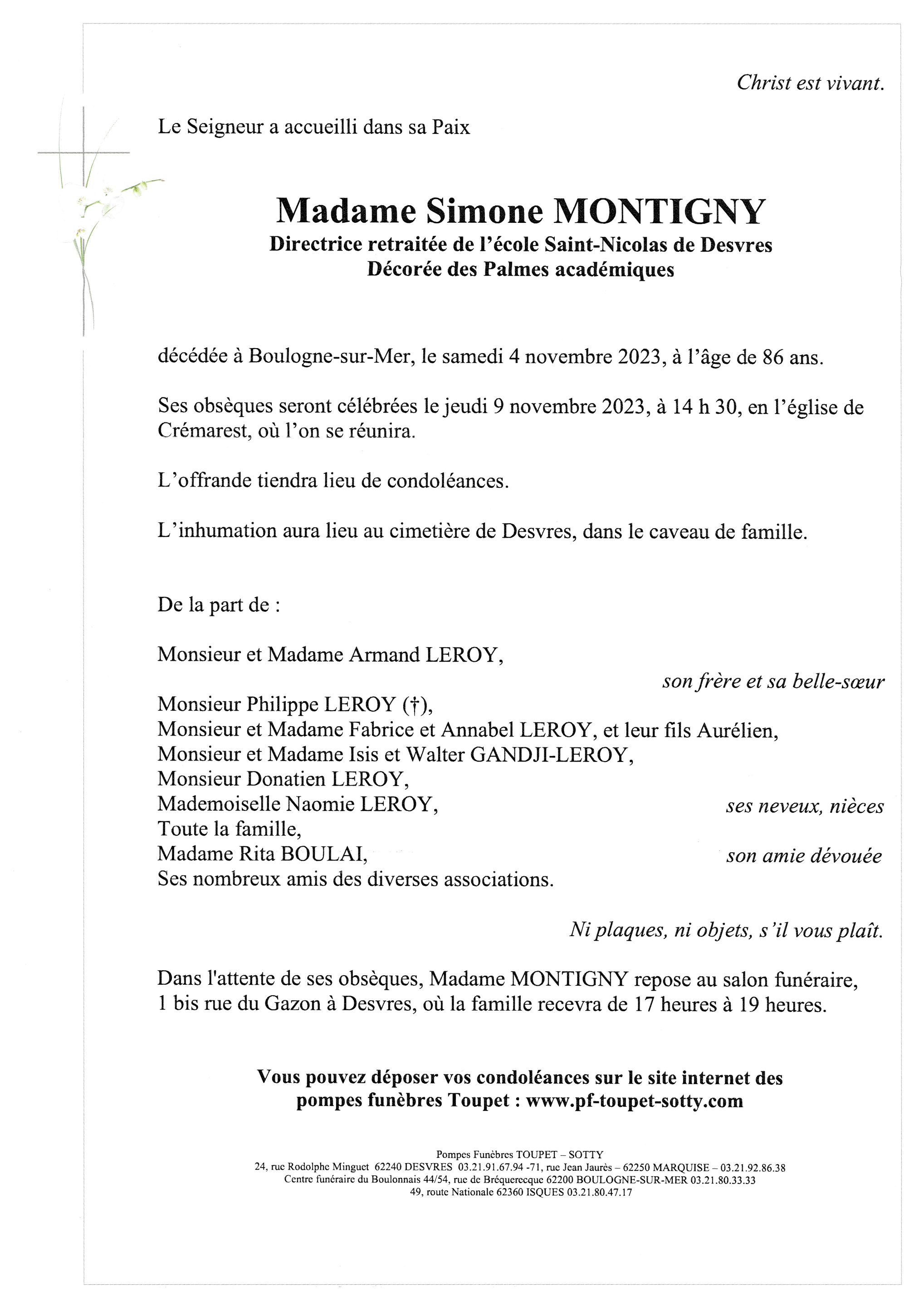 Madame Simone MONTIGNY