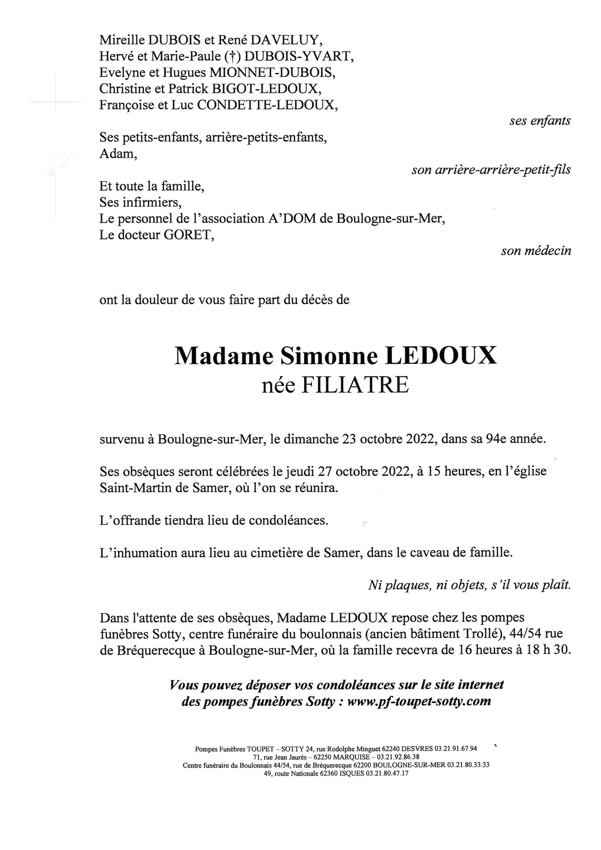 Madame Simonne LEDOUX