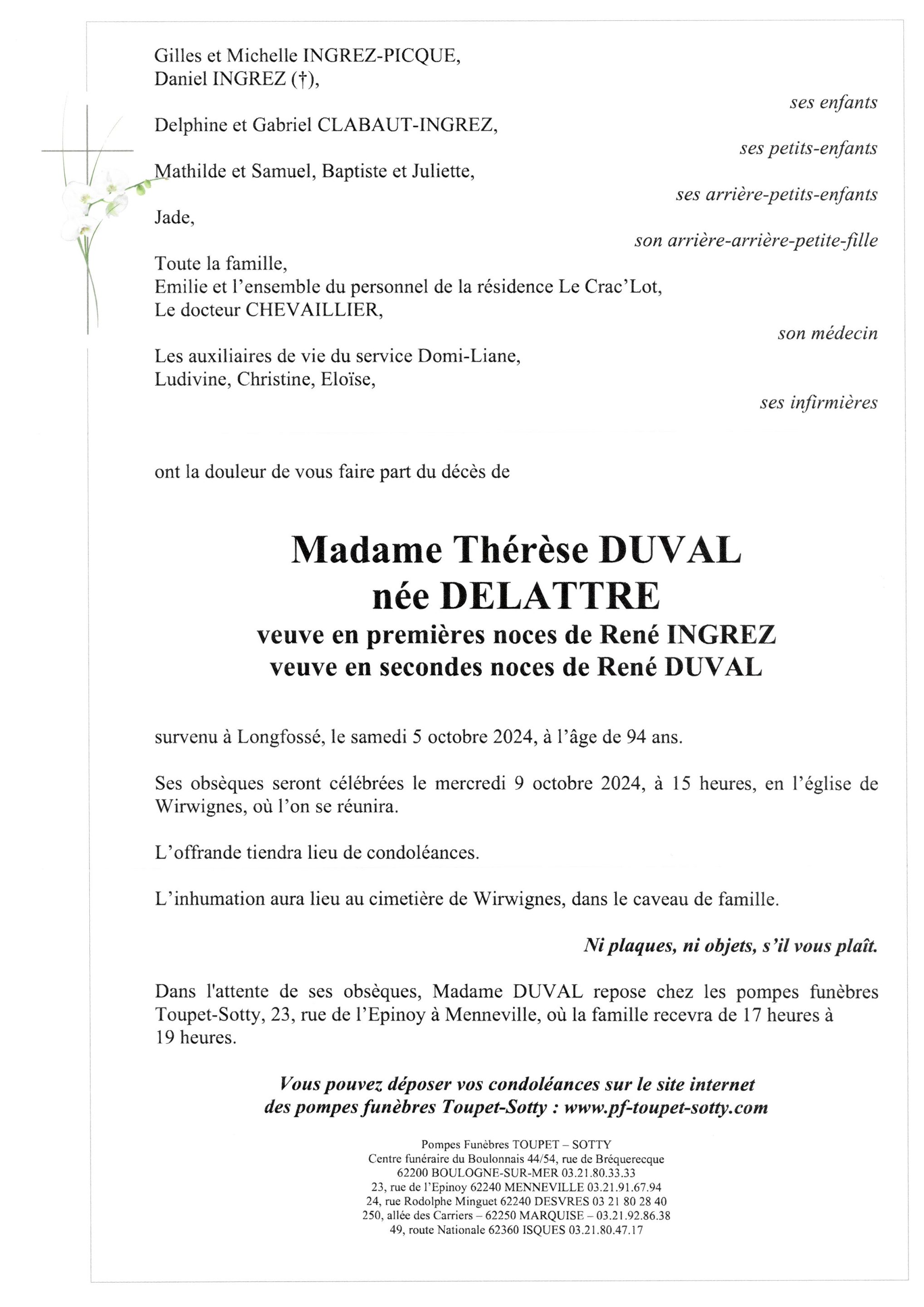 Madame Thérèse DUVAL