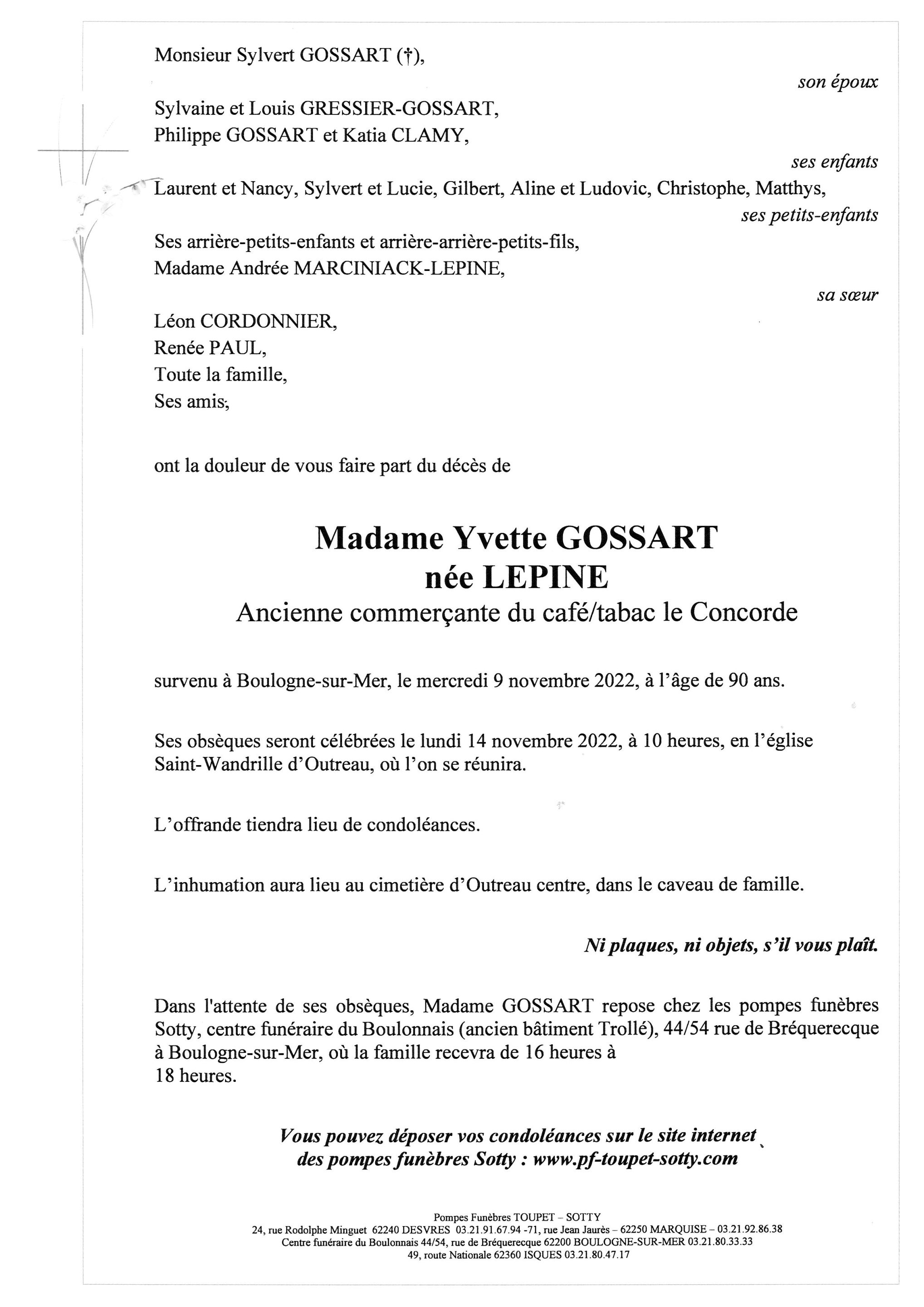 Madame Yvette GOSSART