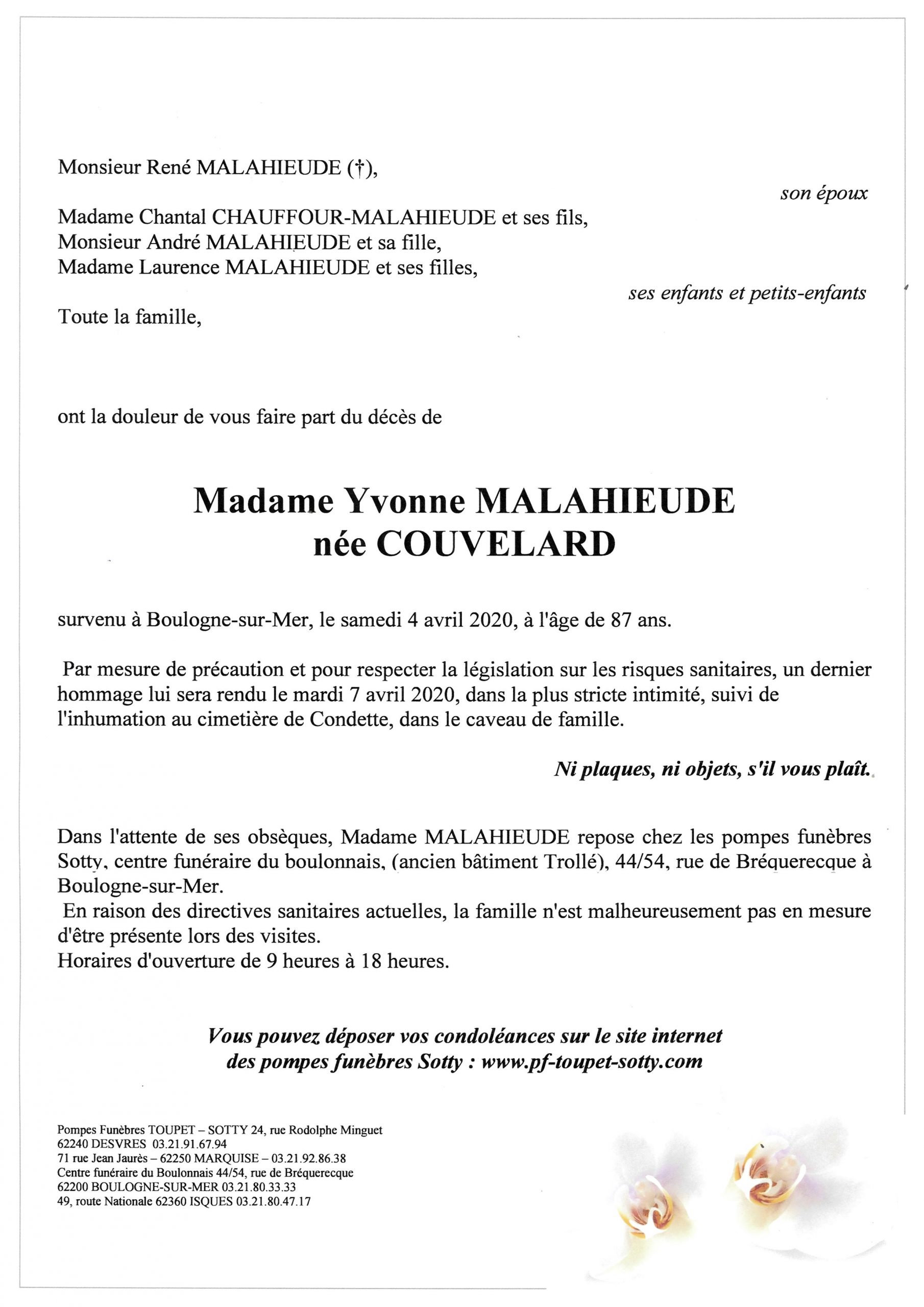 Madame Yvonne MALAHIEUDE