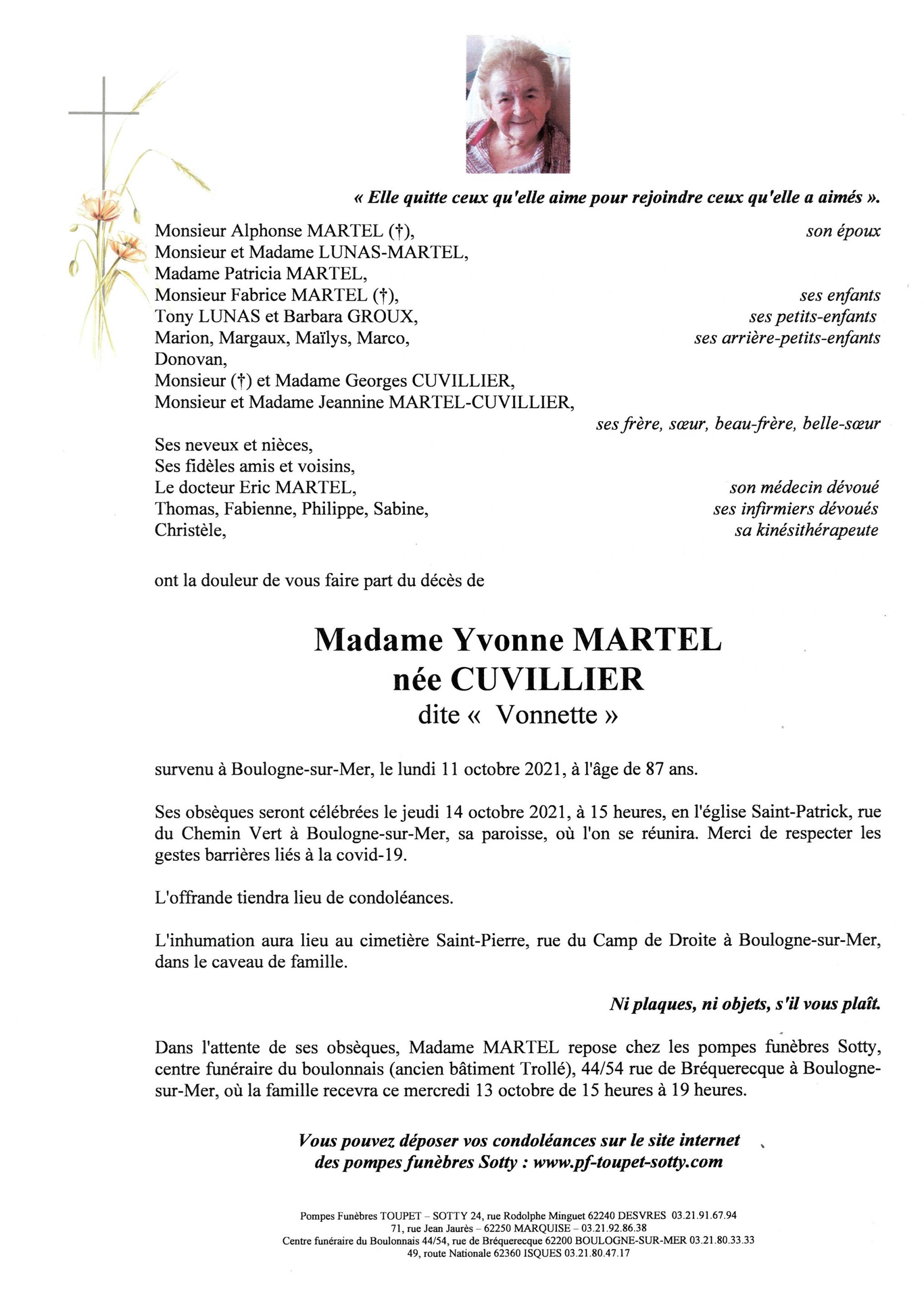 Madame Yvonne MARTEL