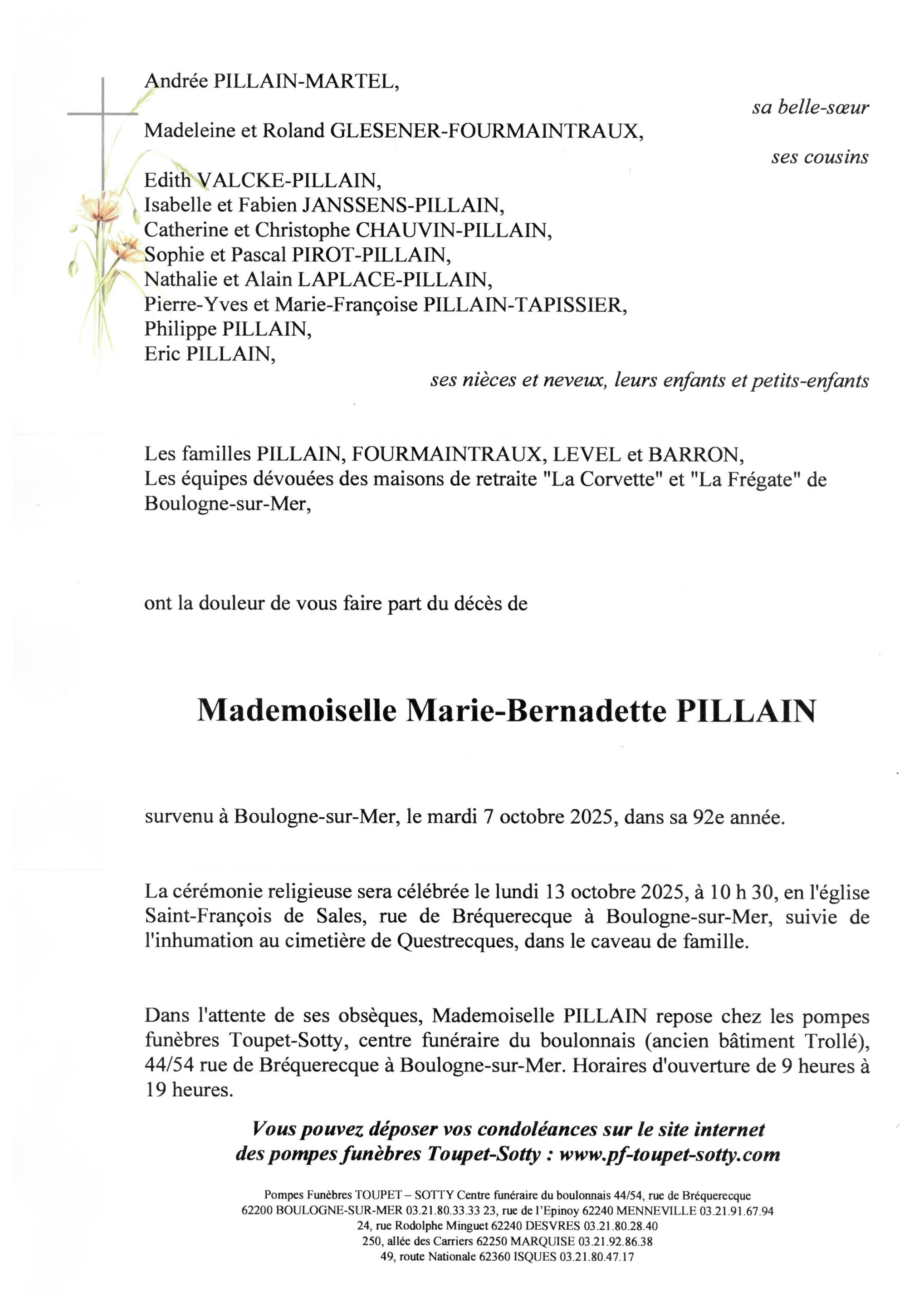 Mademoiselle Marie-Bernadette PILLAIN