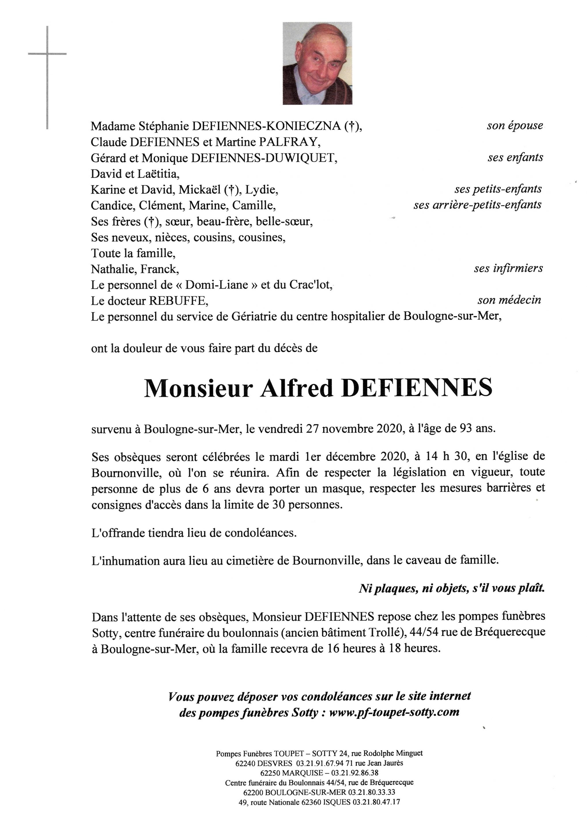 Monsieur Alfred DEFIENNES
