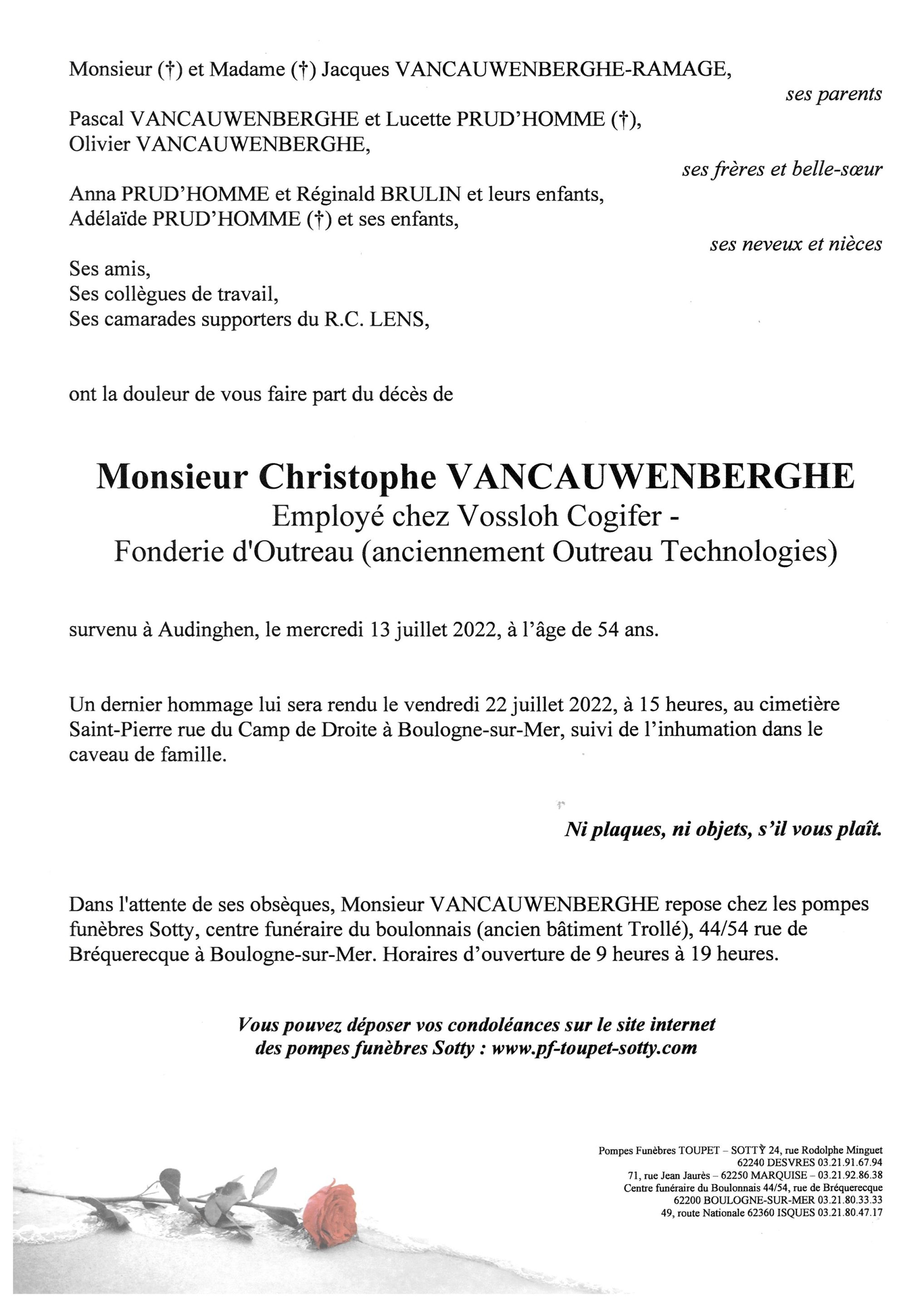 Monsieur Christophe VANCAUWENBERGHE