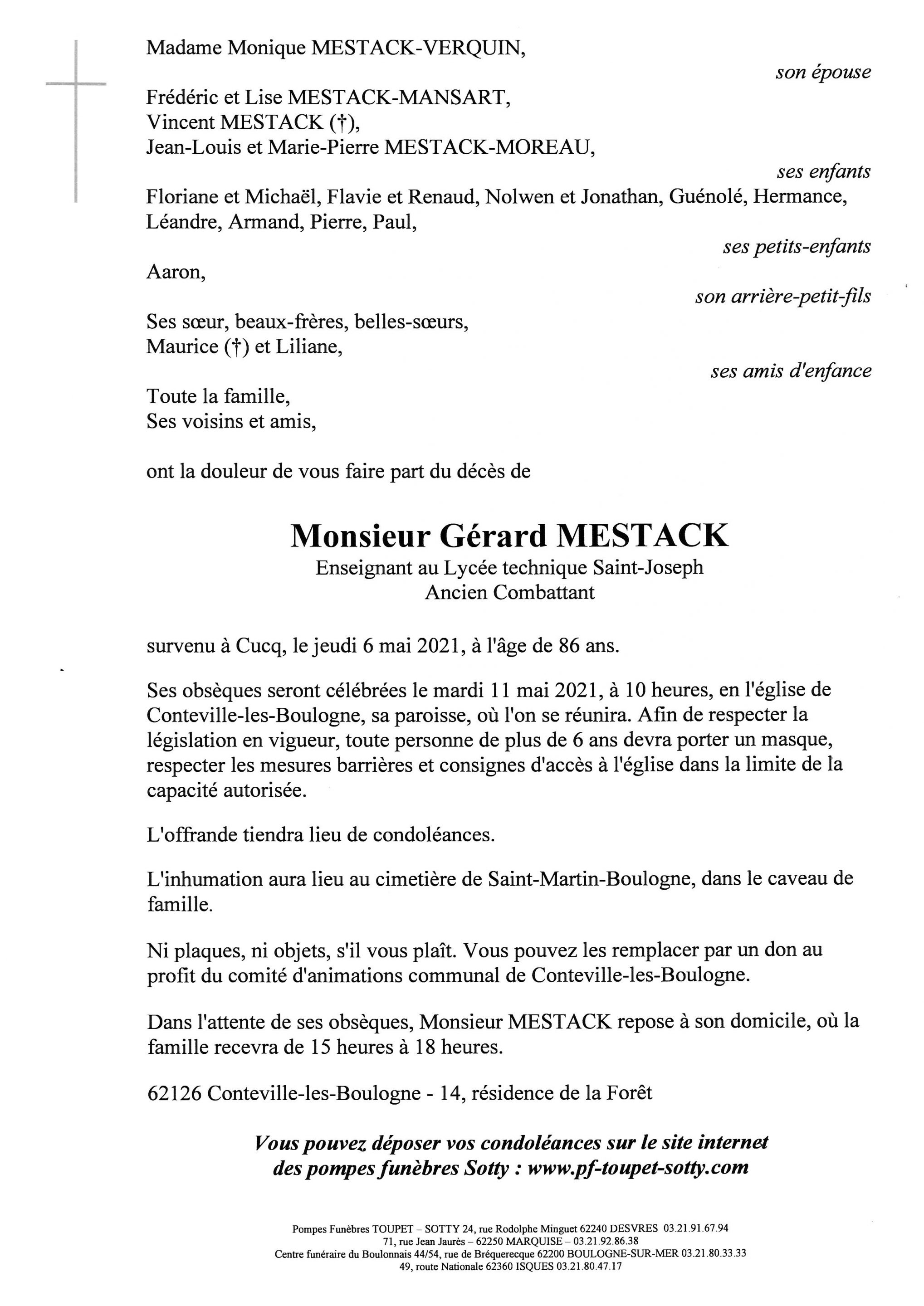 Monsieur Gérard MESTACK