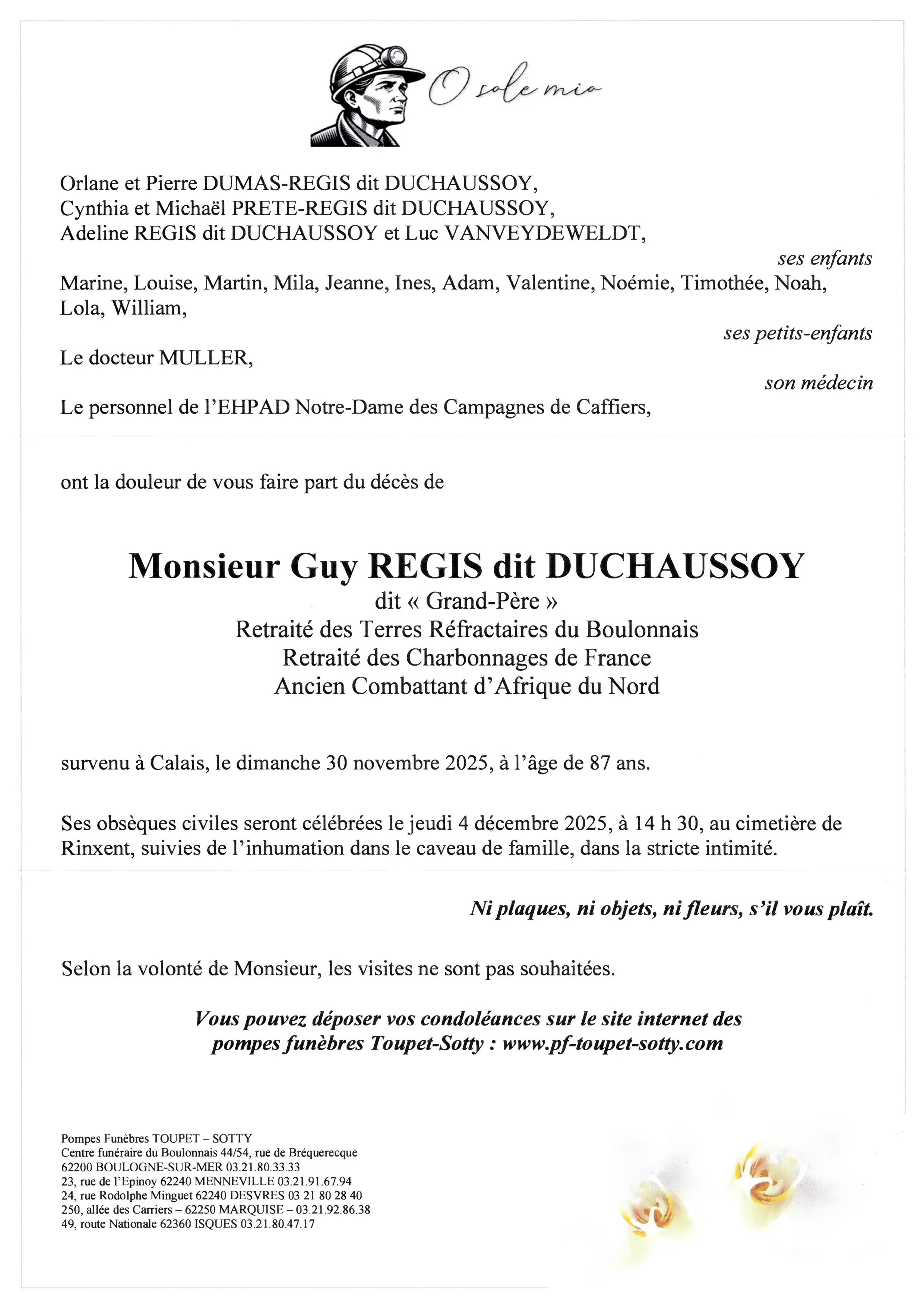 Monsieur Guy REGIS dit DUCHAUSSOY