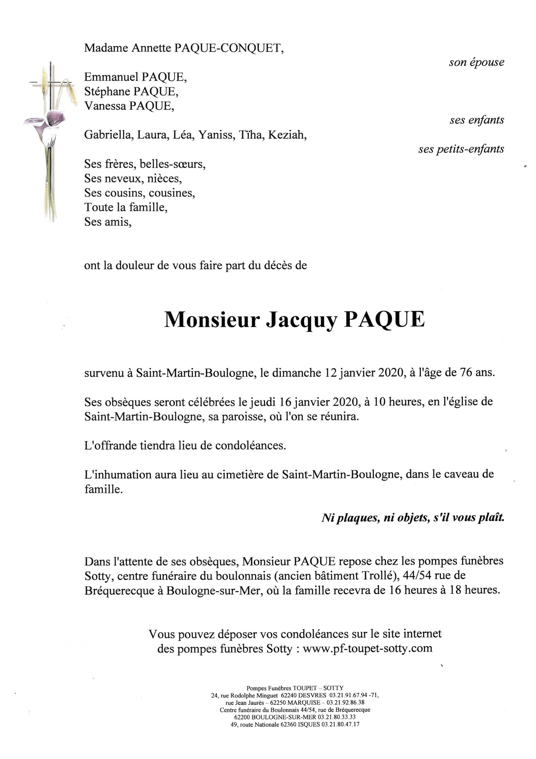 Monsieur Jacquy PAQUE