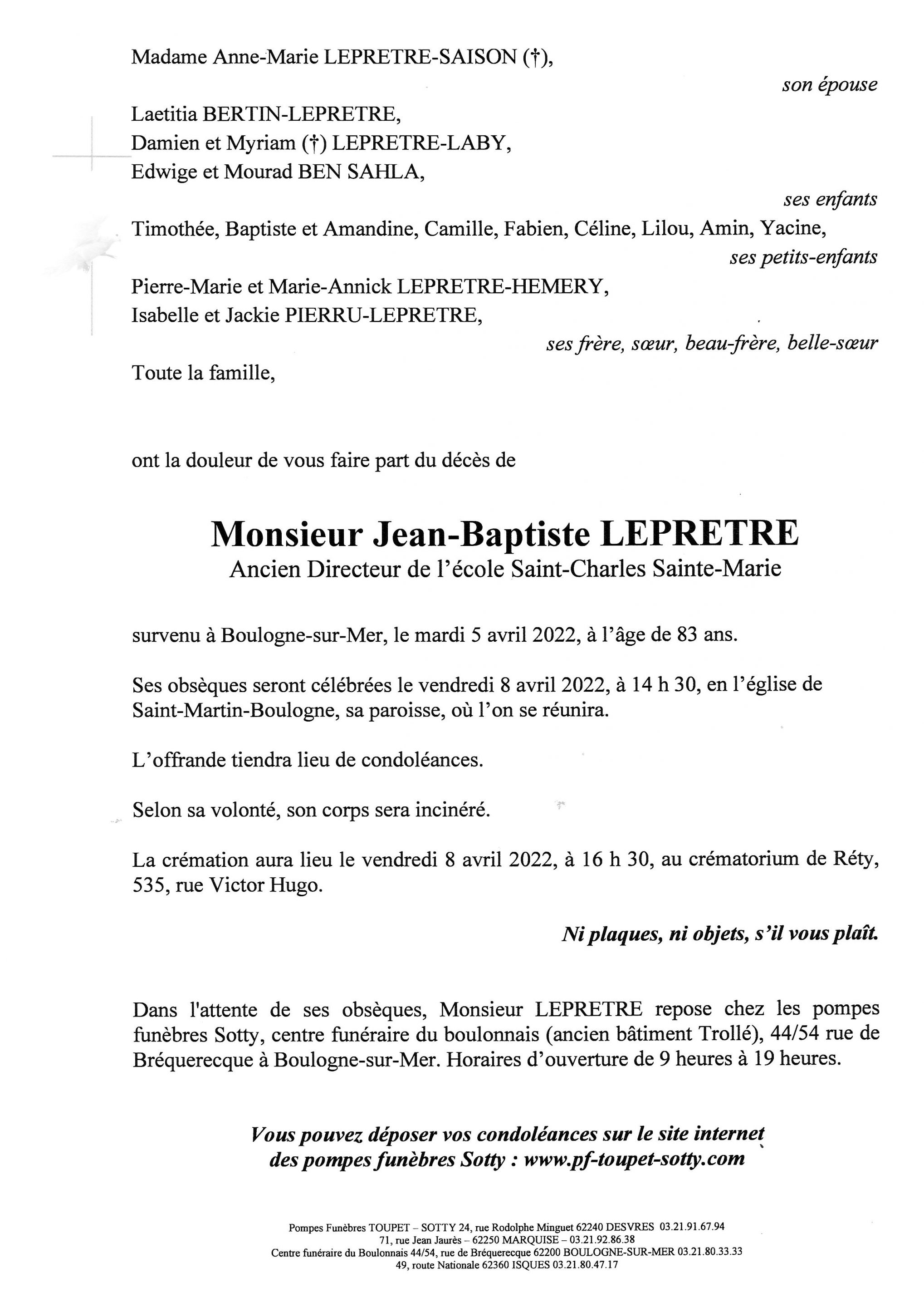 Monsieur Jean-Baptiste LEPRETRE
