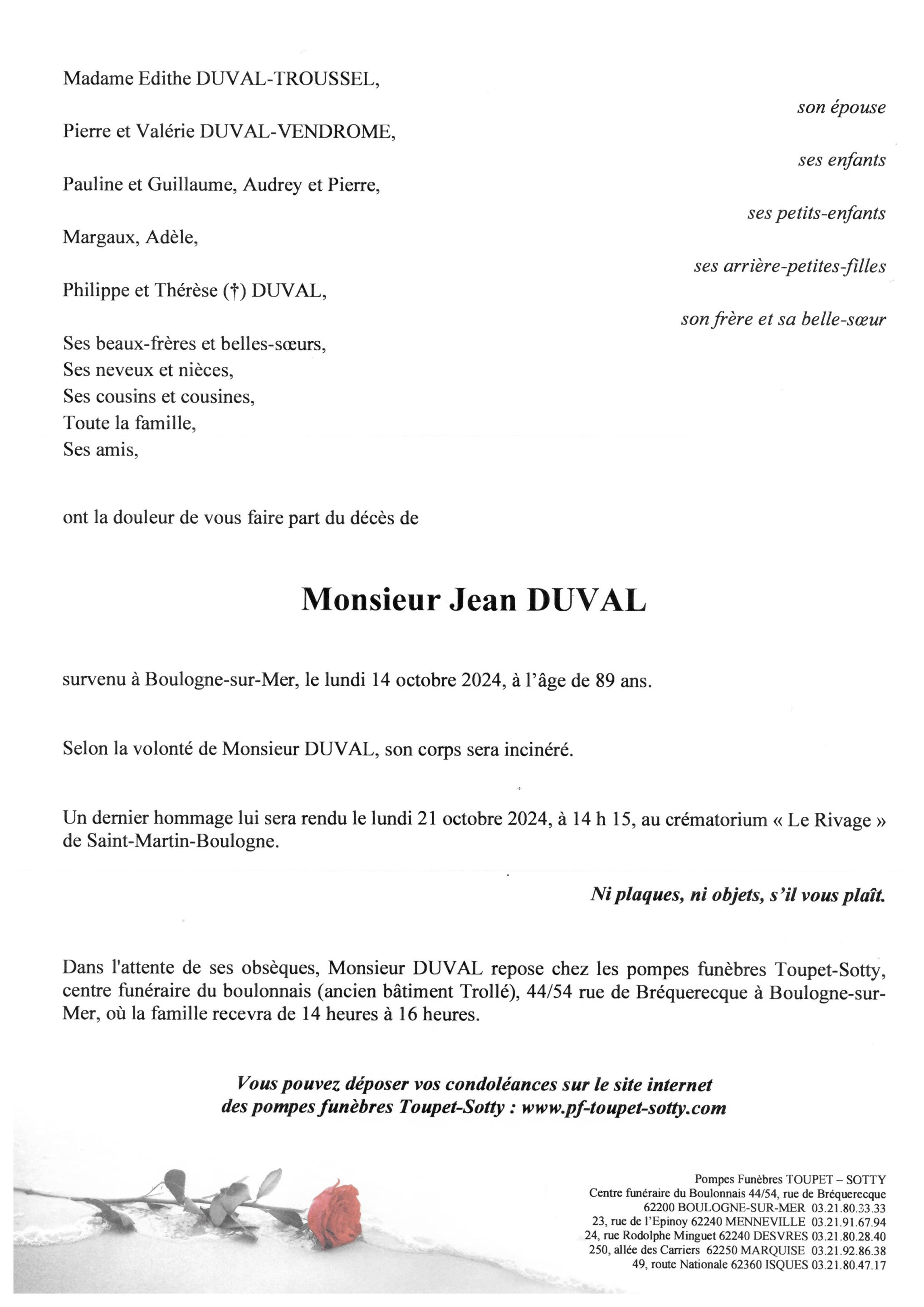 Monsieur Jean DUVAL