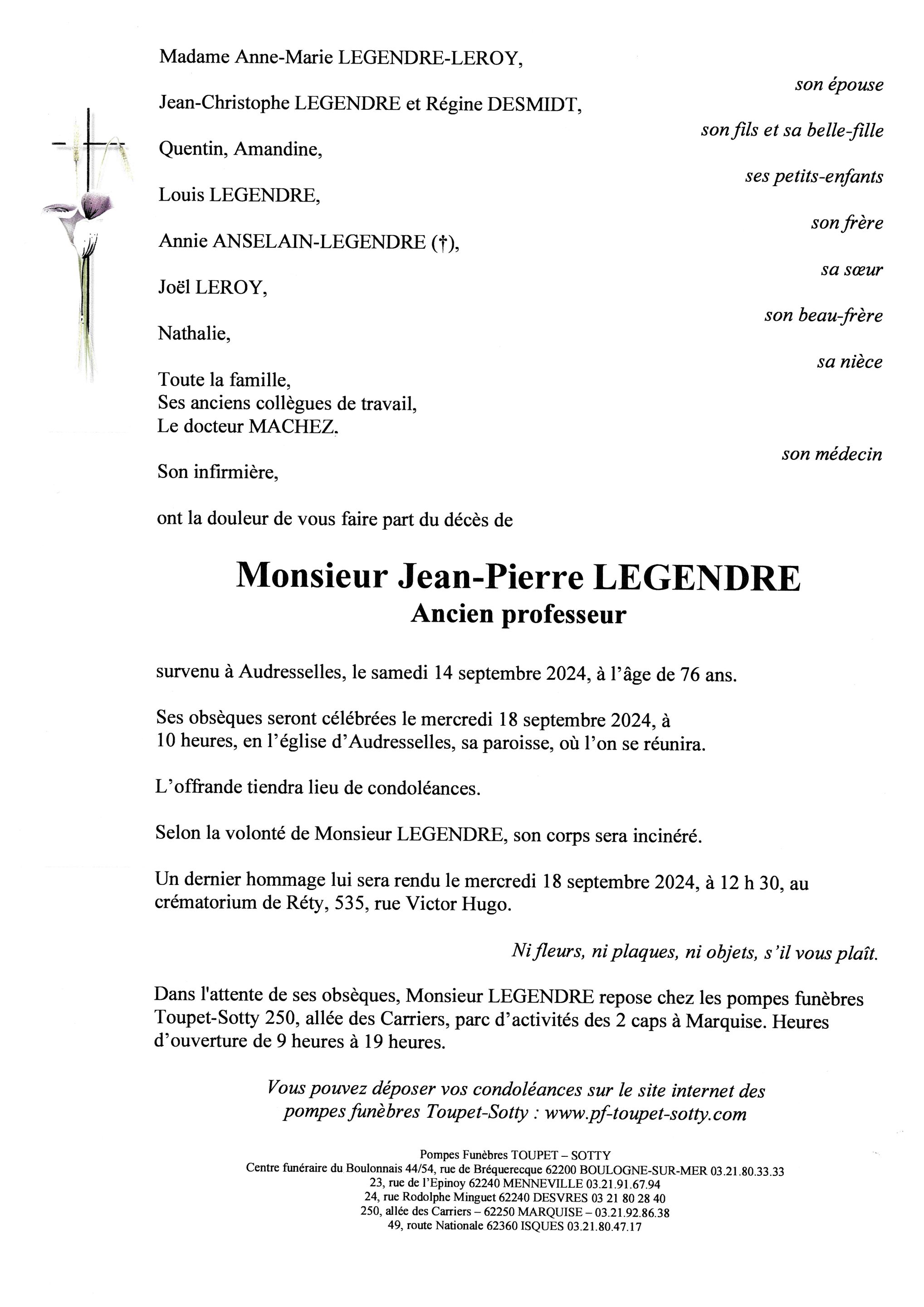 Monsieur Jean-Pierre LEGENDRE