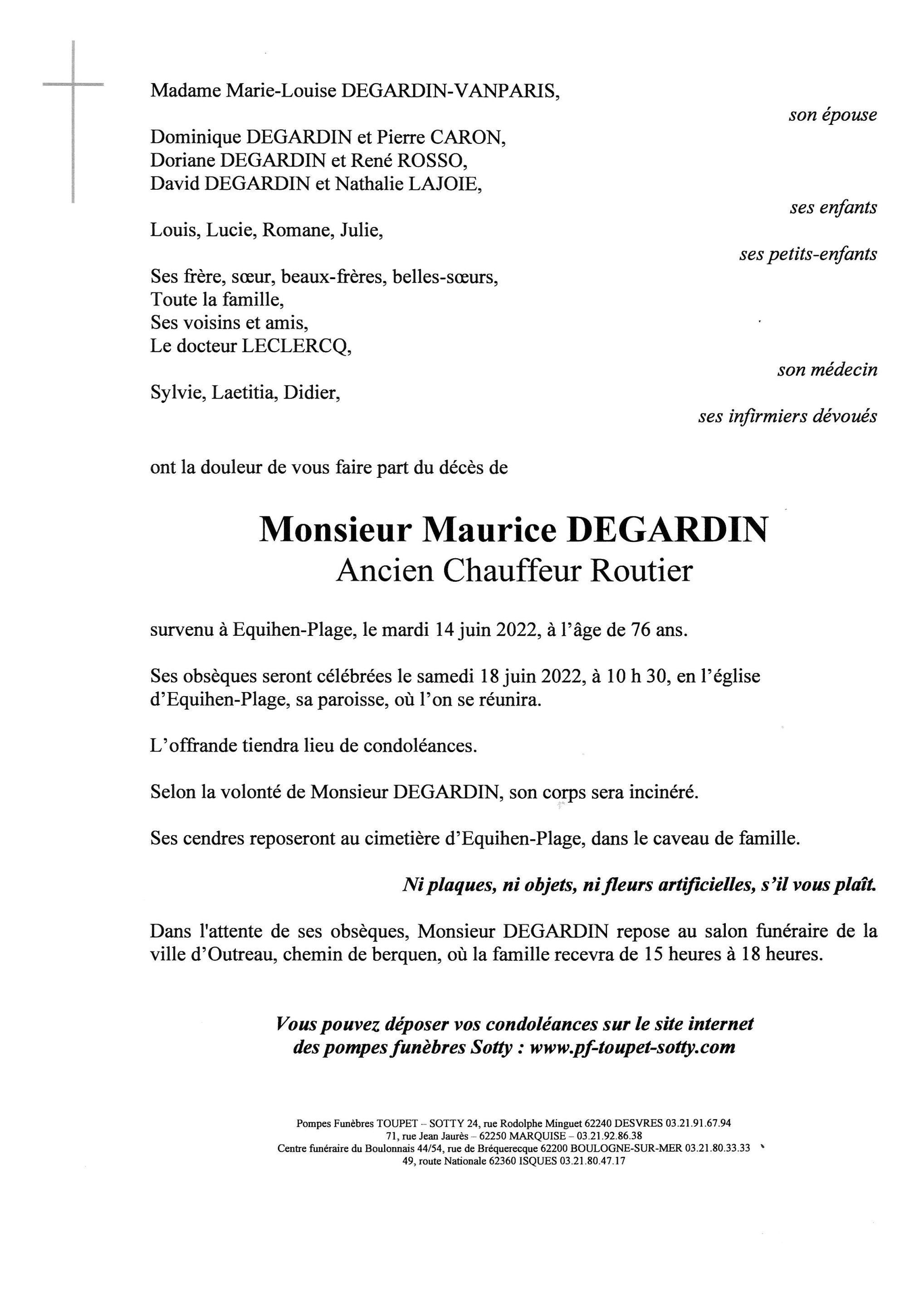 Monsieur Maurice DEGARDIN
