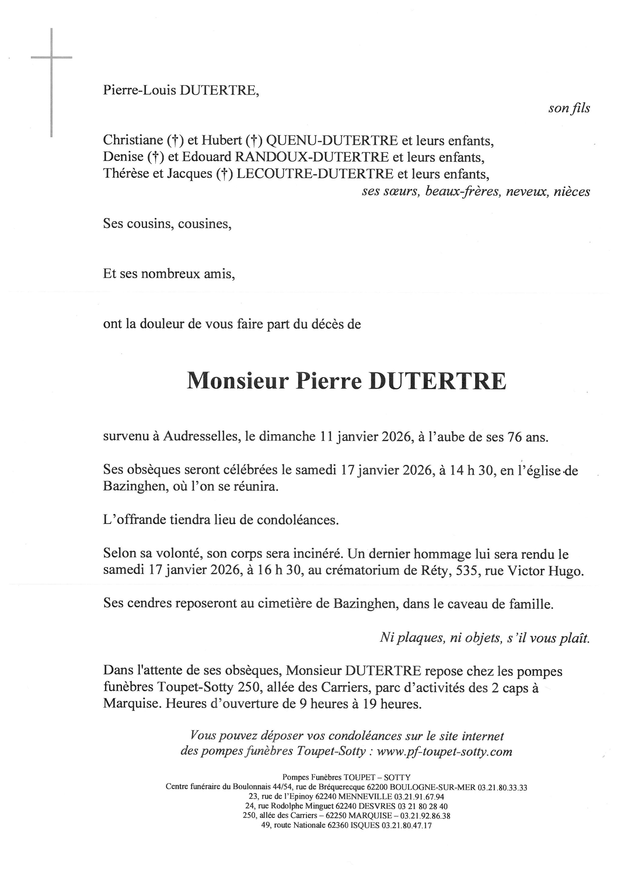 Monsieur Pierre DUTERTRE