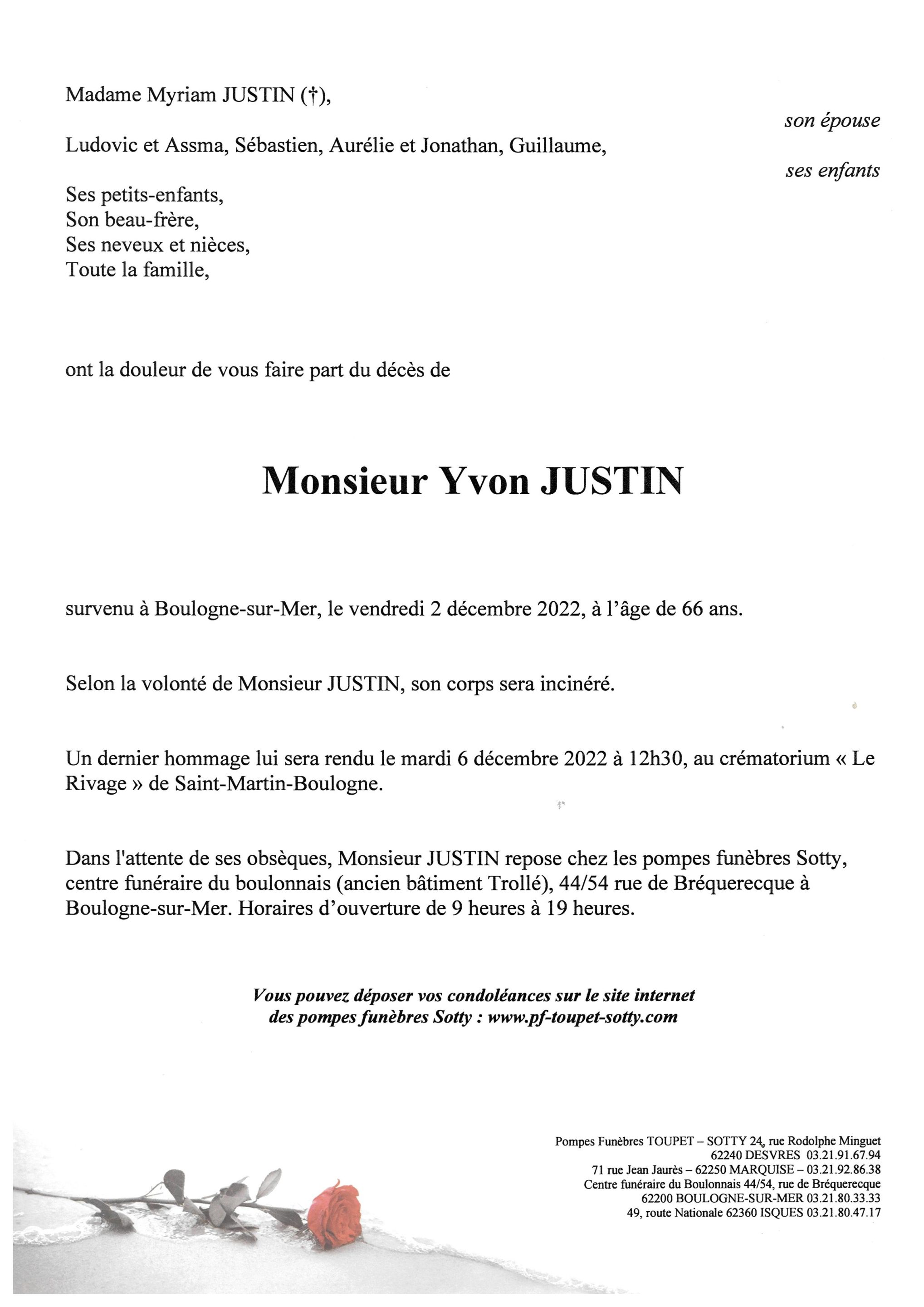 Monsieur Yvon JUSTIN