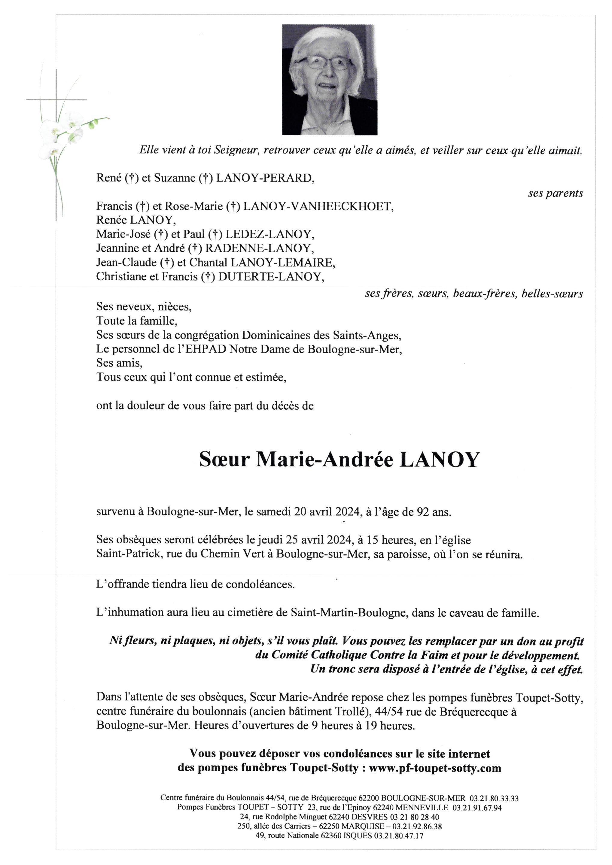 Sœur Marie-Andrée LANOY